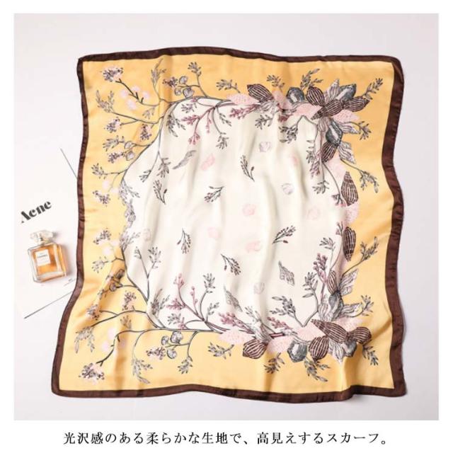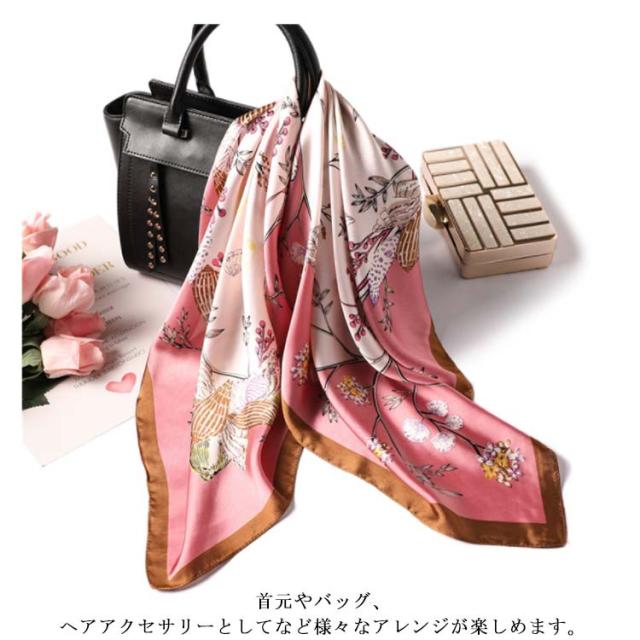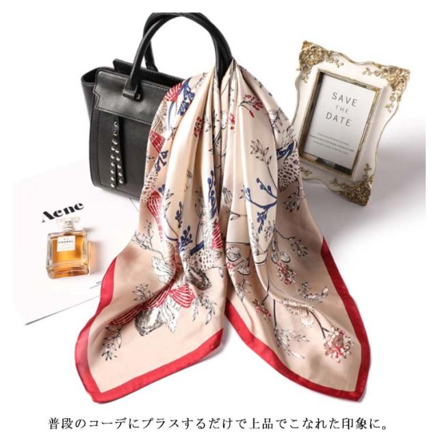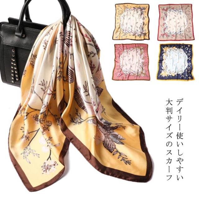 | デイリー使いしやすい大判サイズのスカーフ 光沢感のある柔らかな生地で、高見えするスカーフ。 普段のコーデにプラスするだけで上品でこなれた印象に。 首元やバッグ、ヘアアクセサリーとしてなど様々なアレンジが楽しめます。 お弁当のラッピングや友達へのお菓子等のギフトラッピングなどコスパがいいので、そのままスカーフごと、プレゼントすると喜ばれます。何かと使えるアイテムなのでおすすめです。 ◇コーディネート◇ シンプルコーデとの相性抜群な、巻くだけでこなれ感たっぷりなスタイルを演出できるアイテム。 ヘアアクセサリーやバッグアクセサリーとしてなど幅広いアイテムとのアレンジが楽しめます。 | |
