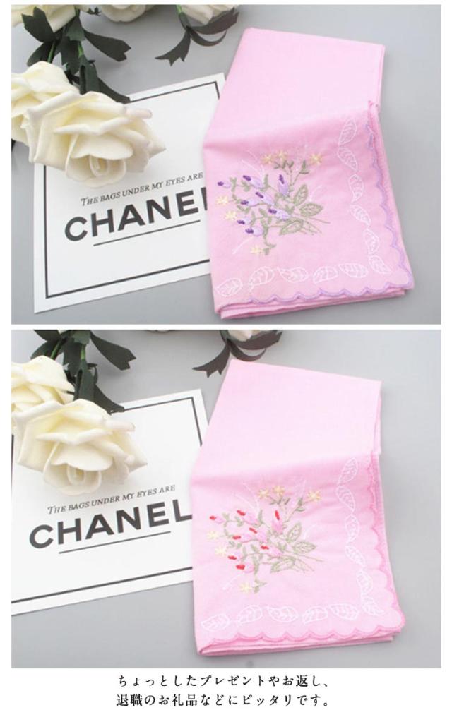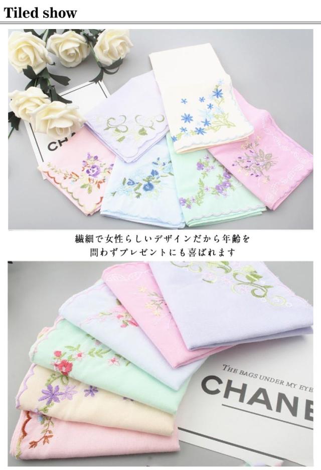 | 繊細で女性らしい華やかな刺?デザイン 繊細で女性らしいデザインだから年齢を問わずプレゼントにも喜ばれます 薄い綿のハンカチなので、タオル素材のものより幅を取らず、ポケットやバッグにコンパクトに収納できます。 速乾性もあるので毎日の洗い替えにも困りません。 ちょっとしたプレゼントやお返し、退職のお礼品などにピッタリです。 | |