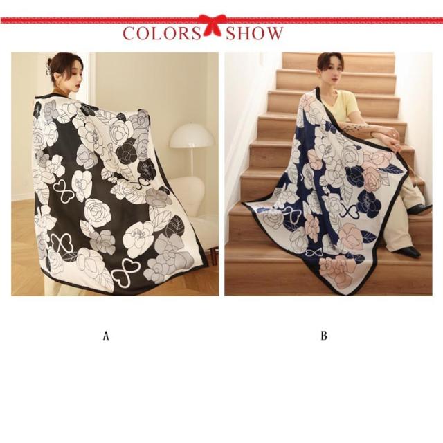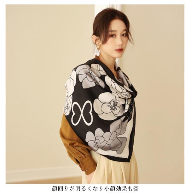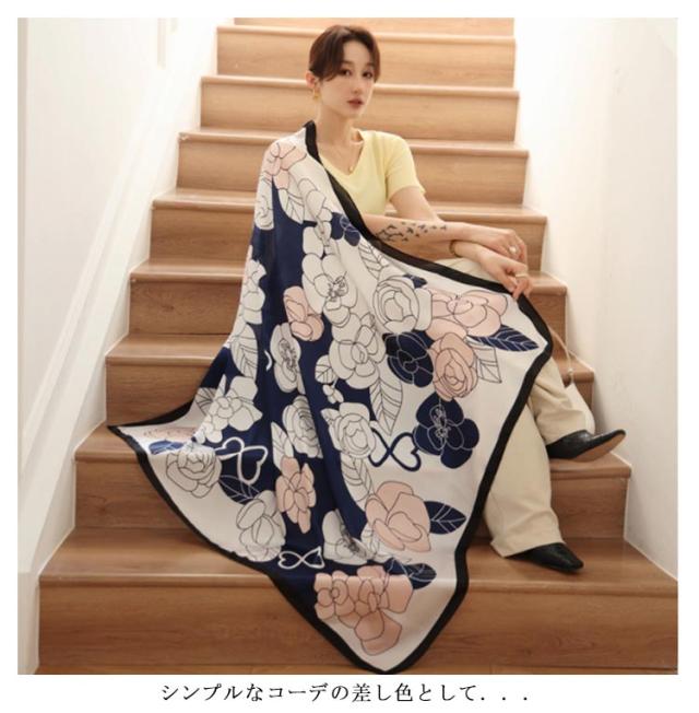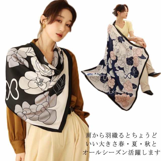 レディース タッチ uv 大判 総柄 タッチ 正方形 冬 110×110cm シルク 春 夏 秋 首 用 サテン 生地 柄 接触冷感 日焼け対策 花絵 uvカット冷房対策 母の日プレゼント 母の日 スカーフ
