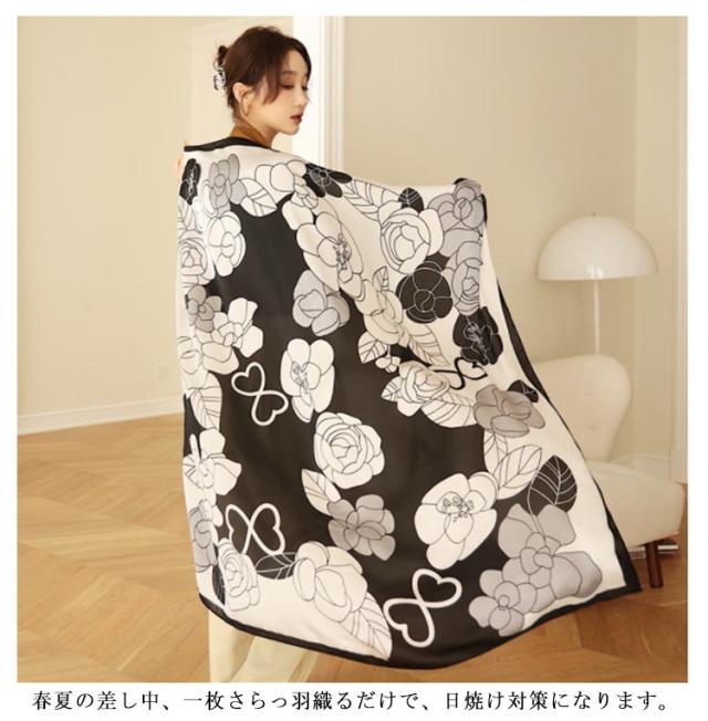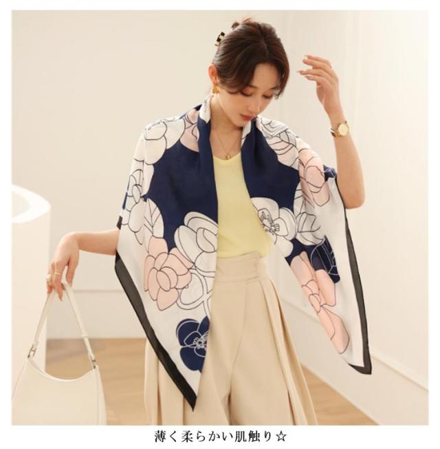 | 肩から羽織るとちょうどいい大きさ春・夏・秋とオールシーズン活躍します 薄く柔らかい肌触り☆ 華やかな柄がコーデを明るくしてくれます シンプルなコーデの差し色として... 顔回りが明るくなり小顔効果も◎ 春夏の差し中、一枚さらっ羽織るだけで、日焼け対策になります。 | |