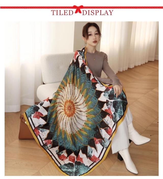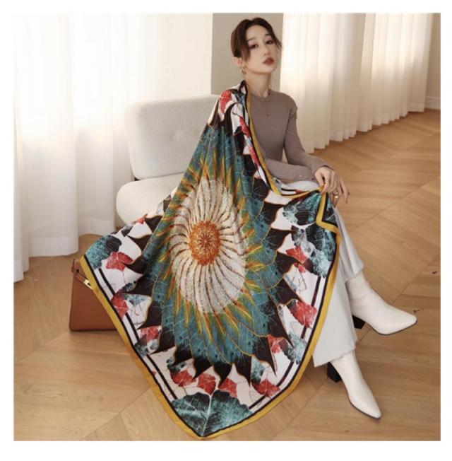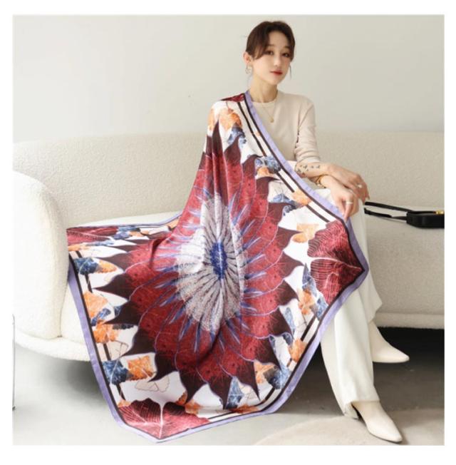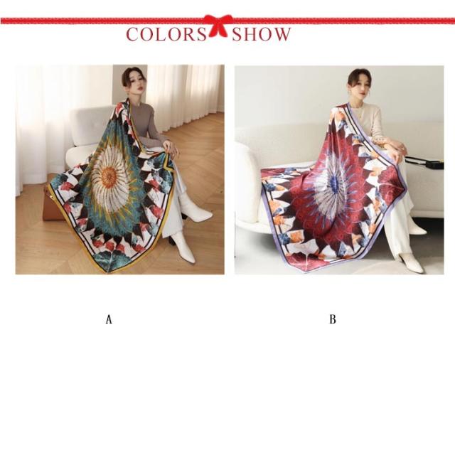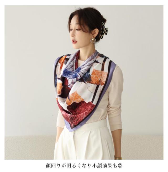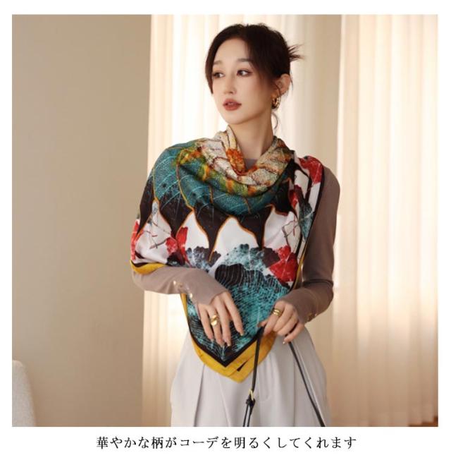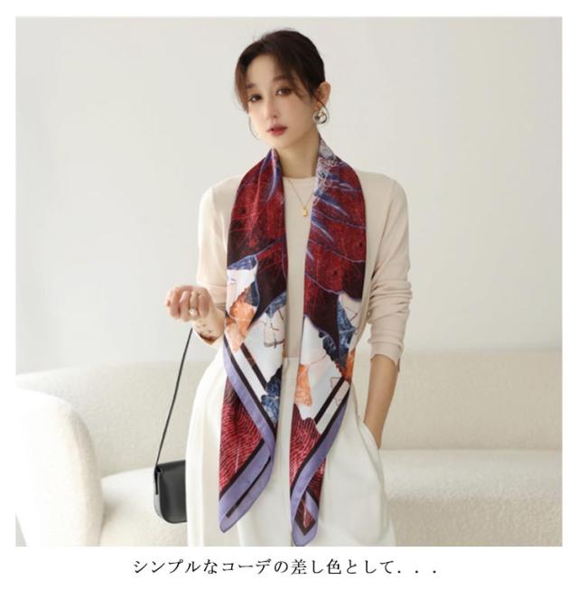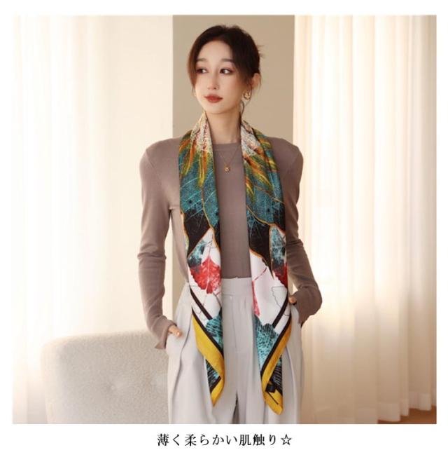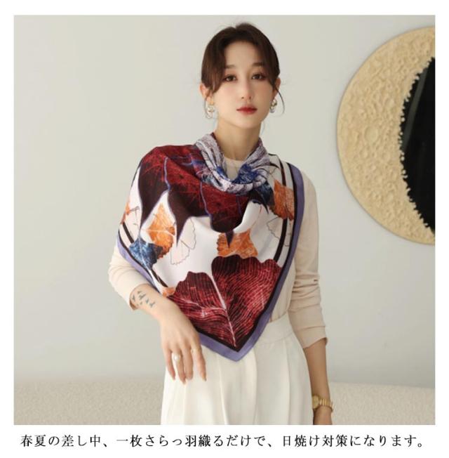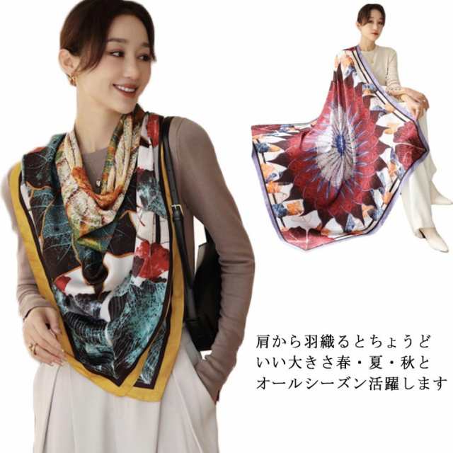 サテン シルク 春 日焼け対策 タッチ 柄 110×110cm レディース 生地 総柄 夏 秋 冬 用 スカーフ 大判 uv 接触冷感 正方形 首 uvカット冷房対策 母の日プレゼント 母の日 プレゼント