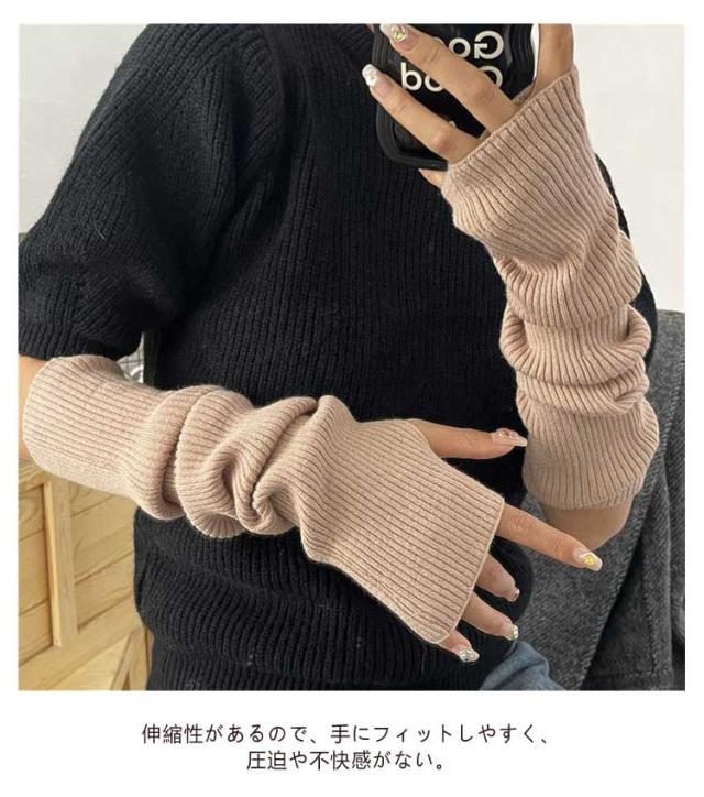 アームカバー 手首から腕までカバー 防寒 アームウォーマー 冷え対策 対策 レディース 保温 暖かい スマホ操作 ロング アームカバー ニット 指切り手袋 防寒 指なし 春 伸縮性 指掛けタイプ 秋 冬 ハンドウォーマー