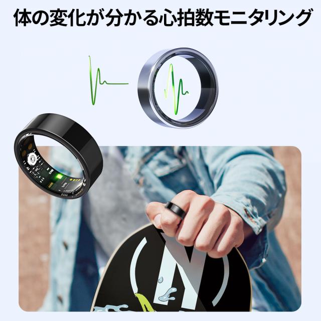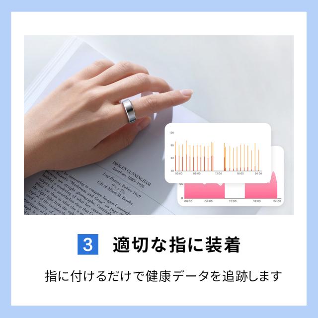 【指先で健康管理】指にはめるだけで心拍数や血中酸素濃度など健康管理ができるようになりました。ファッションの一部として使用できるように大きさ、重さ、サイズにこだわり、よりスマートに健康管理ができます。