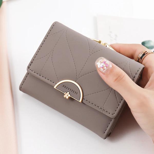 024 レディース夏の新作レディースショートウォレット日本と韓国PUレザーハードウェアバックル三つ折りバッグ高質感マルチC