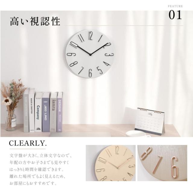 【高い視認性】文字盤が大きく、立体文字なので、年配の方やお子さまでも見やすくはっきりと時間を確認できます。離れた場所でもよく見えるため、お部屋にもおすすめです。立体数字が視覚性にも優れて、子供にも見やすいタイプ。