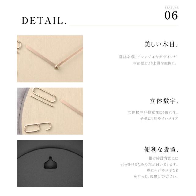 【静音二計時針】秒針が無いスイープムーブメントだからカチカチ音がしない静音仕様。静かな掛け時計だから勉強や就寝時、時間を忘れてリラックスしたい時にピッタリです。※注意:針同士が引っかかってしまう場合は、手で針の位置を微調整してください。