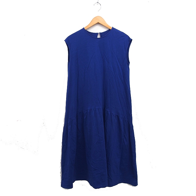 【中古】ローズバッド ROSE BUD ロング ワンピース 丸首 無地 フレア 無地 コットン 綿 M ブルー 青 /FT44 レディース