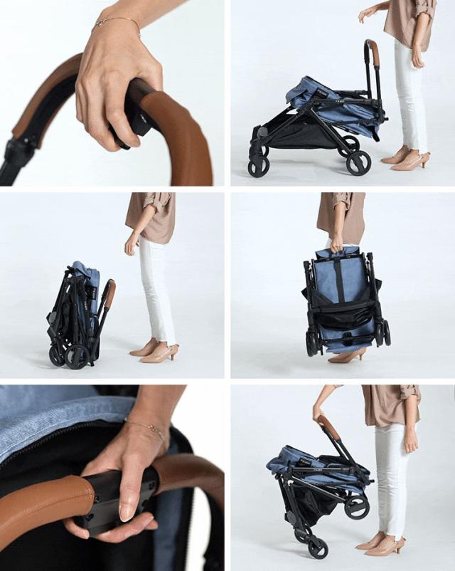 ハンドルのボタンを押すだけで自動で折り畳むことができる、画期的なオートクローズシステムを搭載。