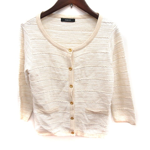 【中古】パリゴ PARIGOT カーディガン ニット 長袖 ボーダー 麻混 リネン混 M ベージュ /RT レディース