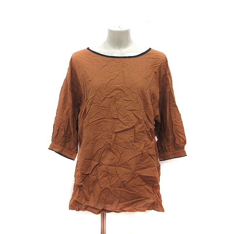 【中古】サマンサモスモス SM2 チュニック ボートネック 麻混 リネン混 バックリボン 七分袖 F 茶 黒 レディース