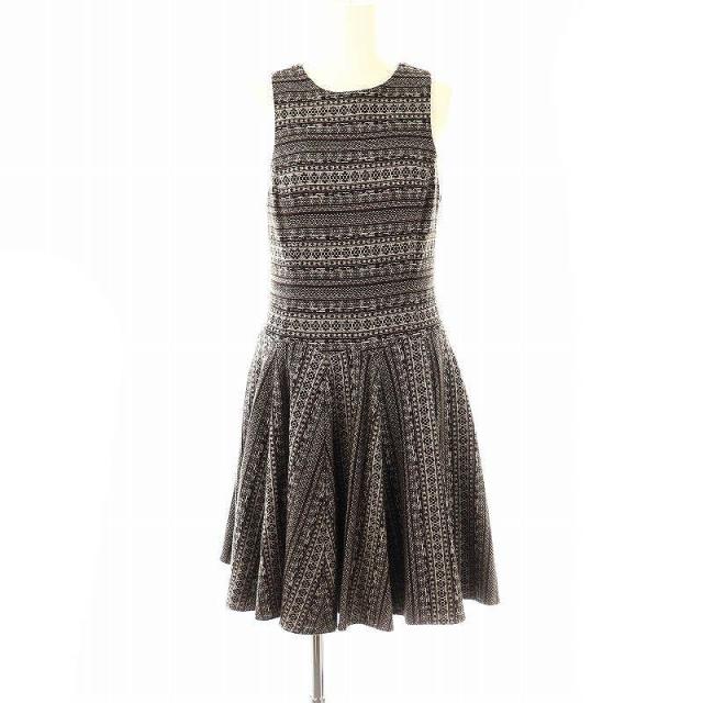 【中古】ティビ tibi ウール混 総柄 ノースリーブ ワンピース 2 ダークブラウン オフホワイト /ES ■OS レディース
