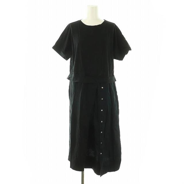 【中古】エレンディーク ELENDEEK タックブロックカットソーワンピース ロング 半袖 2 ブラック /HK ■OS ■SH