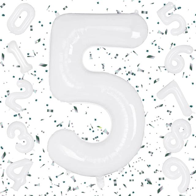 Exgox 数字バルーン ホワイト アルミ風船 誕生日 40インチ ナンバー5 ハッピーバースデー 飾り付け 男の子 女の子 ギフト 記念日 お祝い