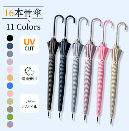 晴雨兼用 傘 16本骨 レディース メンズ 軽量 軽い 長傘 雨傘 日傘 完全遮光 レザーハンドル UVカット 紫外線カット 大きいめ 撥水 耐久 頑丈 抗風 男女兼用 ジャンプ ワンタッチ 折れにくい ロング傘 シンプル 無地 ギフト