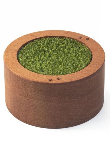 【芝生+足跡】蓋の上部は柔らかな人工芝が植え込んであります。草原で走り回ったり、お昼寝したりした日々が思い出されます。肉球プリントもあって見た目も可愛いです。芝生部分にお気に入りの小物を置いて。ミニ骨壺 は猫・犬の場合、分骨用としてご利用いただけます。お散歩が大好きだった君の新しい居場所は、芝生の上。