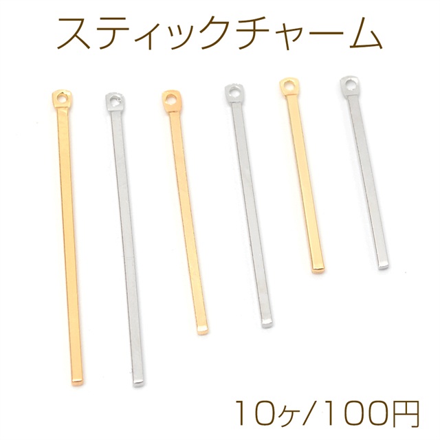 スティックチャーム 銅製 直角 棒 メタルパーツ メタルチャーム ゴールド/ロジウム 長さ3種(10ヶ)