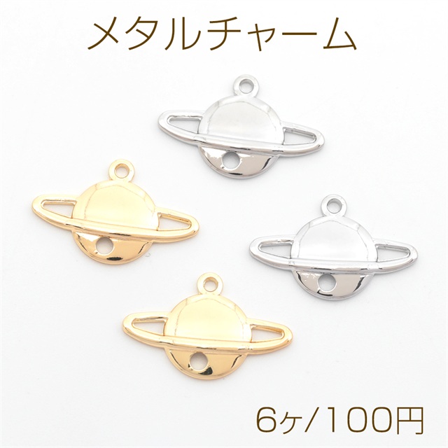 メタルチャーム 銅製 UFO 宇宙 プラネット メタルパーツ コネクターパーツ 上1カン下1穴付き 約12×19mm(6ヶ)
