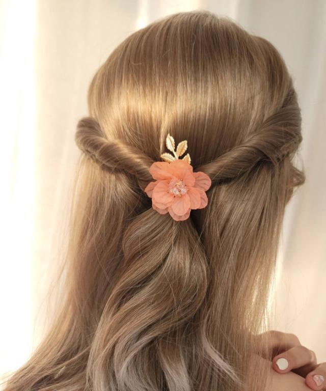 | サイズ | 花のサイズ:直径 約4.5cm/コーム全体のサイズ:約7cm ハンドメイドですので細かな誤差が生じることがあります。予めご了承ください。 |