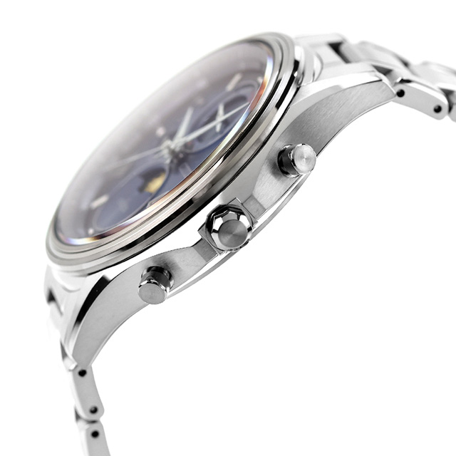 | 仕様 | 日常生活用強化防水(10気圧) 平均月差±15秒(非受信時) 日付・曜日表示 24時間表示 月齢表示(ムーンフェイズ) 月齢自動計算機能 北・南半球月齢表示切替機能 パーペチュアルカレンダー 日中米欧電波受信 受信局自動選択機能 定時受信機能 強制受信機能 ワールドタイム機能(24時差) サマータイム機能 衝撃検知機能 針自動補正機能 充電量表示機能 充電警告機能 過充電防止機能 パワーセーブ機能 駆動期間:フル充電時約2.5年可動(パワーセーブ作動時) 耐ニッケル 耐磁1種 夜光(針) 裏ぶたに都市表示を刻印 日本製 |