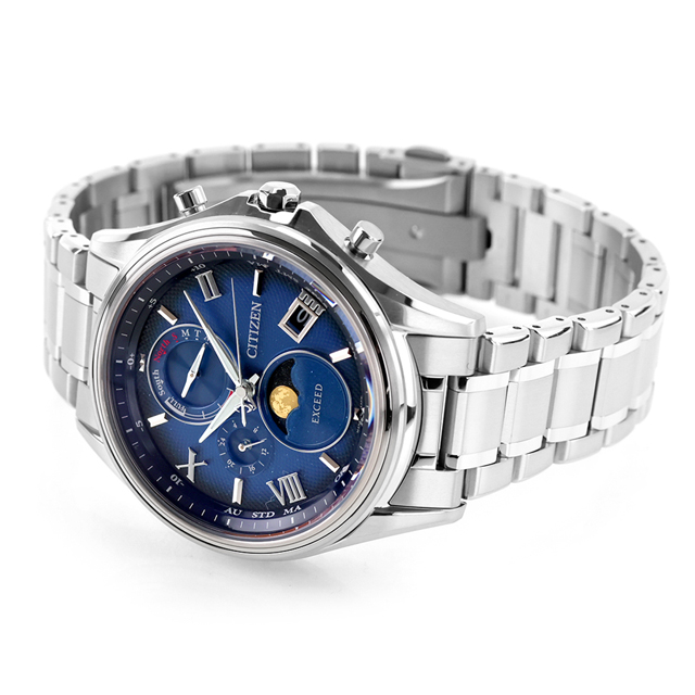 正規品 7年保証キャンペーン 送料無料 シチズン エクシード ダイレクトフライト 月暈 つきがさ チタン ムーンフェイズ 電波ソーラー 日本製 光発電エコドライブ電波 光発電エコ・ドライブ電波 メンズ 腕時計 BY1020-61L CITIZEN EXCEED アナログ ブルーグラデーション ◆確かな品質と洗練されたデザイン。大人のためのドレスウオッチ、シチズン EXCEED(エクシード)。 月齢自動計算機能「ルナプログラム」搭載のcal.H874を採用したモデルに、人気色の青文字板が加わりました。デザインテーマは、月に薄い雲がかかったとき、その周囲に光の輪が現れる現象「月暈(つきがさ)」。この現象は「幸せの訪れを意味するもの」として幸運のサインであるという言い伝えがあります。インクジェットグラデーションを用いた青文字板で、深みのある美しい夜空を演出。文字板にあしらったギョーシェ加工の一種であるグレンドルジュの模様で、月の光が拡散されて輪を描くように輝く様を表現しています。 発売日:2025年4月発売