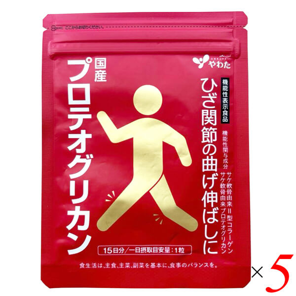 やわた 国産プロテオグリカン 機能性表示食品 15粒入(約半月分) 5個セット II型コラーゲン サプリ サプリメント 膝 関節 軟骨