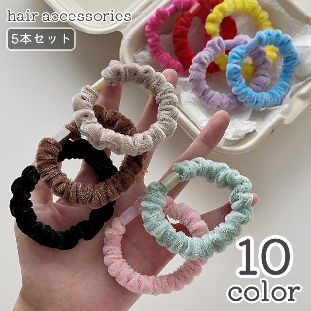 シュシュ ヘアゴム 5個セット ヘアアクセサリー 髪飾り レディース ヘアアレンジ 髪留め 髪ゴム シンプル かわいい 無地 普