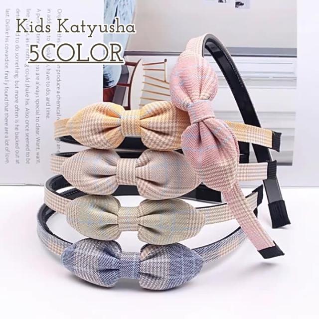 カチューシャ キッズ 子供用 ヘアアクセサリー チェック柄 リボン キュート フェミニン きれいめ 上品 フォーマル カジュアル