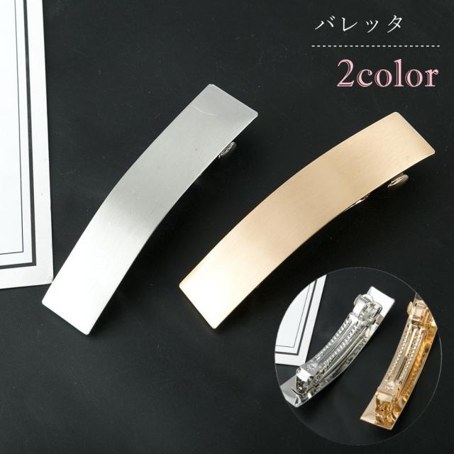 バレッタ 髪留め レディース 女性 ヘアアクセサリー ファッション雑貨 長方形 四角形 プレート型 無地 ゴールドカラー シルバ