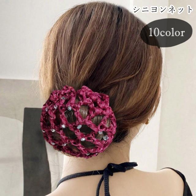 シニヨンネット お団子ネット レディース 女性 ヘアアクセサリー ファッション雑貨 ラインストーン ブラック ブラウン ホワイト
