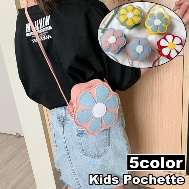 ポシェット ショルダーバッグ ミニバッグ キッズ 子供 女の子 鞄 カバン 肩掛け 斜め掛け フラワー 花 コンパクト 小さめ