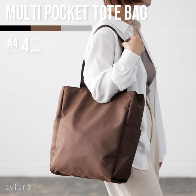 【マルチポケットトートバッグ】 トート バッグ 鞄 ポリエステル 軽量 軽い A4サイズ シンプル カジュアル デイリー お出か