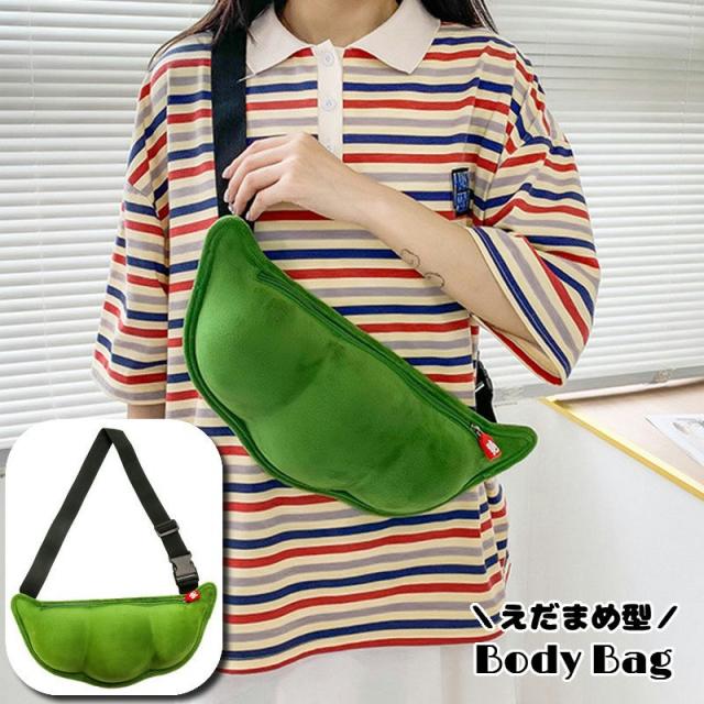 ボディバッグ ショルダーバッグ 肩掛け 斜め掛けバッグ ワンショルダータイプ 枝豆 えだまめ型 起毛 レディース 婦人用 女性