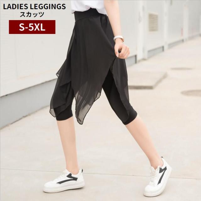 スカッツ レギンス スカート付き スパッツ 七分丈 レディース 女性用 レッグウェア ボトムス 大きいサイズあり アシンメトリー