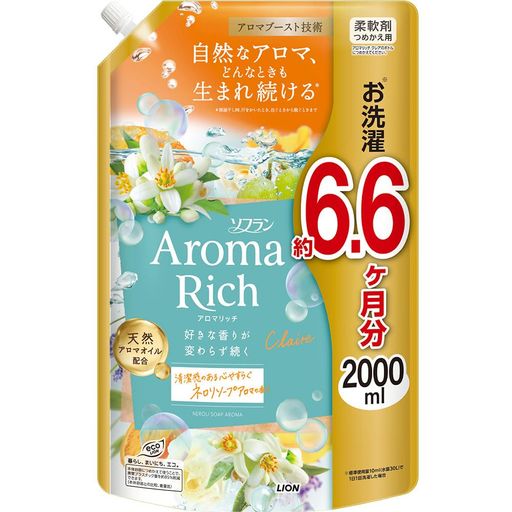 ソフランアロマリッチ 【大容量】 クレア(ネロリソープアロマの香り) 液体 柔軟剤 詰め替え メガジャンボ 2000ML
