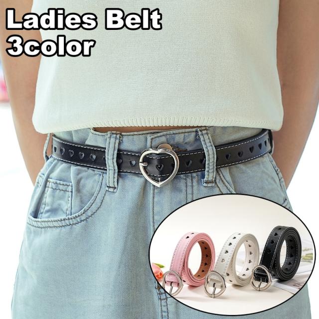 ハートのホールとバックルが可愛らしいレディースベルトです。