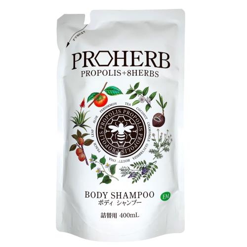 プロハーブ EM ボディシャンプー 天然ハーブ プロポリス ハチミツ ヒアルロン酸 無香料 無着色 パラベンフリー 詰替え用 400ml