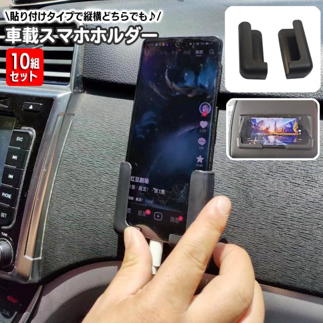 車載スマホホルダー 10組セット スマホスタンド カー用品 粘着シール式 スマホラック 貼り付け 縦向き 横向き シンプル 壁掛