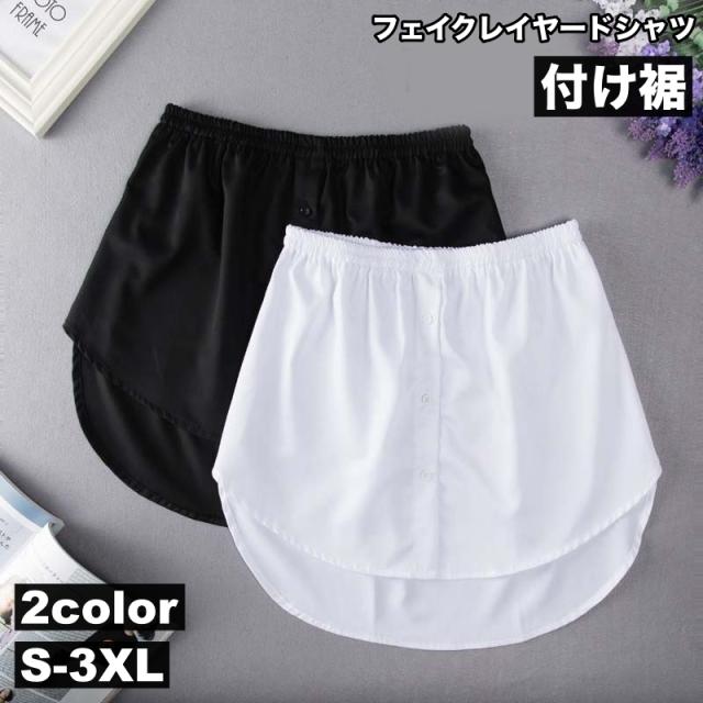 付け裾 つけ裾 重ね着風 レイヤード風 フェイクレイヤードシャツ レディース 女性 ウエストゴム 無地 テールカット ラウンドカ