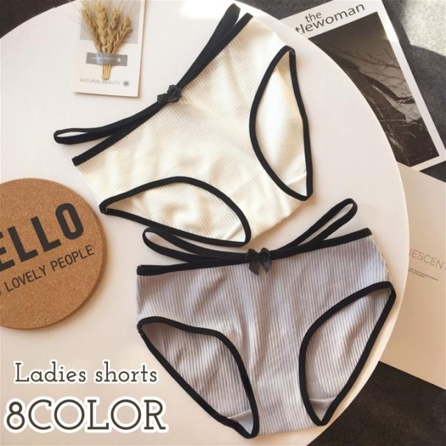 ヒップハンガーショーツ レディース ショーツ パンツ ローライズ ヒップハング 浅履き リボン リブ かわいい おしゃれ キュー