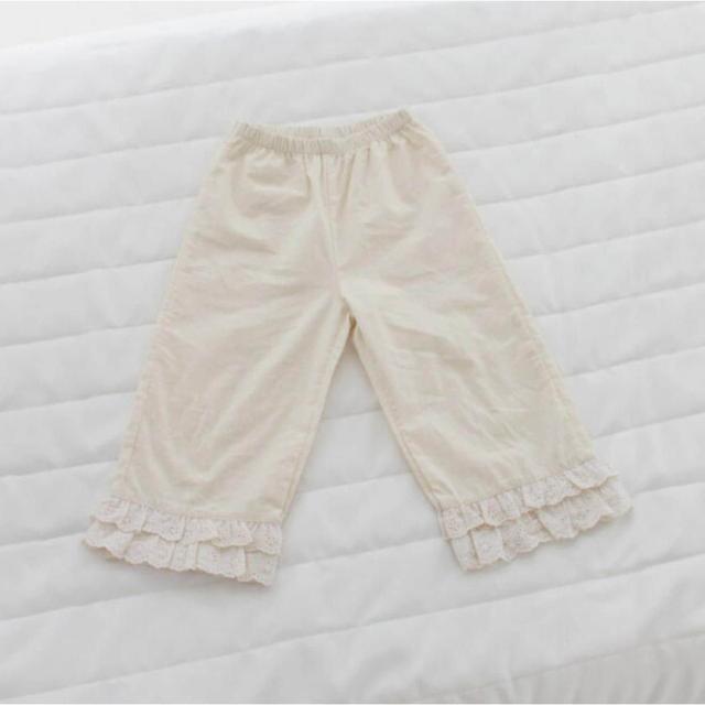 無地から伝わる「やさしい気持ち」と綿100の「着心地のよさ」を重視したパジャマパンツです。ナチュラルさにほんのり可愛らしさを加えた裾レースがこだわりのポイントです。ワンピースの下にパジャマパンツを履くだけで寝る時間が安心です。綿100使用した女の子のパジャマパンツは、ほんのり可愛いナチュラルなテイストから子供へのプレゼントにも喜ばれます。