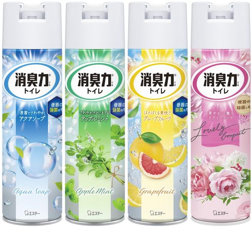 消臭力 [香り4種アソートパック] トイレ用 スプレー(アクアソープ・アップルミント・グレープフルーツ・ラブリーブーケ) 365ML×4個 消臭剤 消臭 芳香剤 消臭スプレー