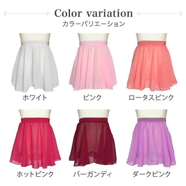 バレエ スカート キッズ フレアシフォン プルオンスカート ウエスト ゴム 子供・ジュニア カラフル バレエスカート 着脱かんたん ふんわり 定番 こども キッズ カラー 白 ピンク 紫 黒 緑 青 水色 紺 白 100 105 110 115 120 125 130 135 140 145 150 155 160
