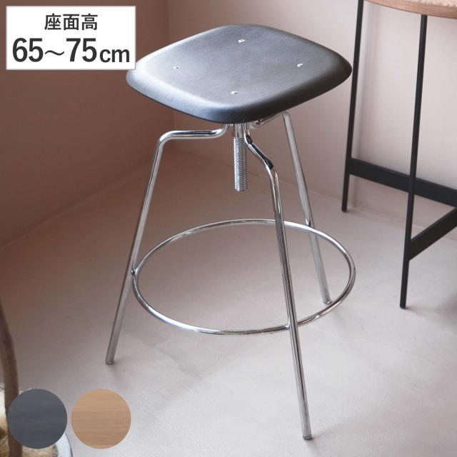 カウンターチェア座面高65〜75cm 昇降式 ハイスツール ( 背もたれなし 木製座面 ハイチェア バーチェア ハイタイプ キッチン チェア 椅子 インダストリアル調 無骨 スチール脚 天然木 ナチュラル ブラック 四角 )