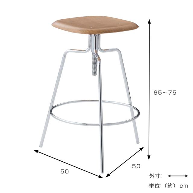 座面をくるくる回すことで、座面高65cm〜75cmの間でお好みの高さに調節が可能です。