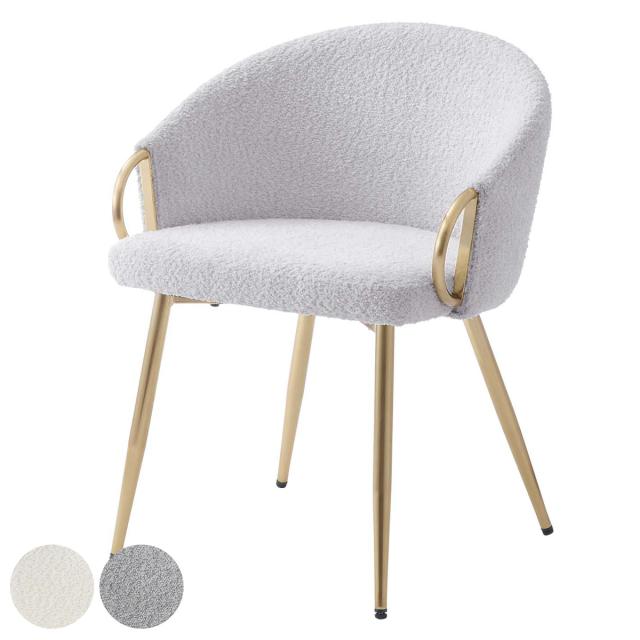 ダイニングチェア 座面高45cm アームチェア アンティークゴールド ( ブークレ生地 もこもこ ゴールド フレーム 食卓 椅子 チェア デスクチェア エレガント リビング ダイニング ファブリック 海外インテリア ホテルライク 高級感 )