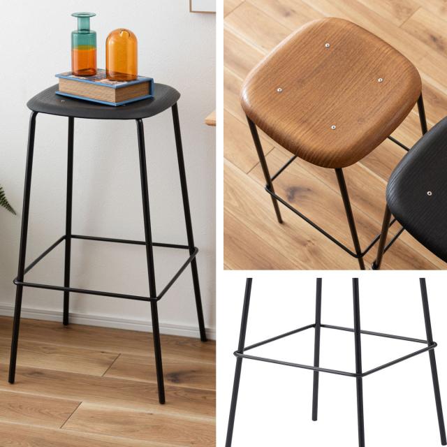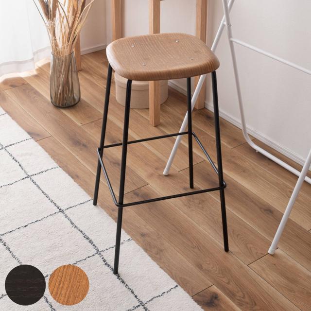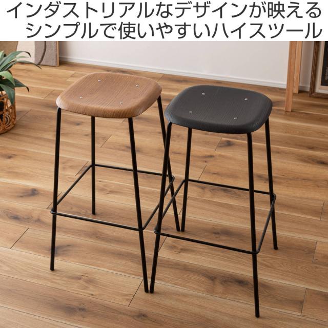 カウンターチェア 座面高75cm ハイスツール ( 背もたれなし 木製座面 ハイチェア バーチェア ハイタイプ キッチン チェア 椅子 インダストリアル調 無骨 スチール脚 天然木 ナチュラル ブラック 四角 )