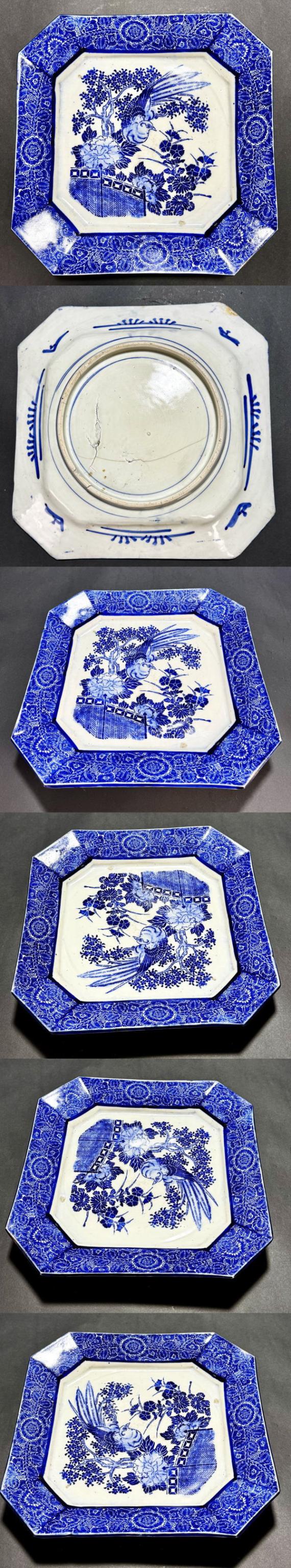 【送料無料】明治時代 古伊万里 印判花鳥図大角皿 約横30.5cm 菓子器 古染付 青花 呉須 焼物 入手困難 骨董 日本古玩 (旧家蔵出し) 威龍彩雲通販