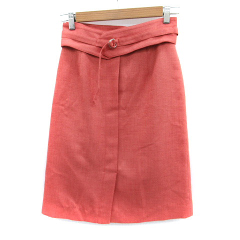 【中古】プロポーション ボディドレッシング フレアスカート ミモレ丈 サッシュベルト付き 3 コーラルレッド