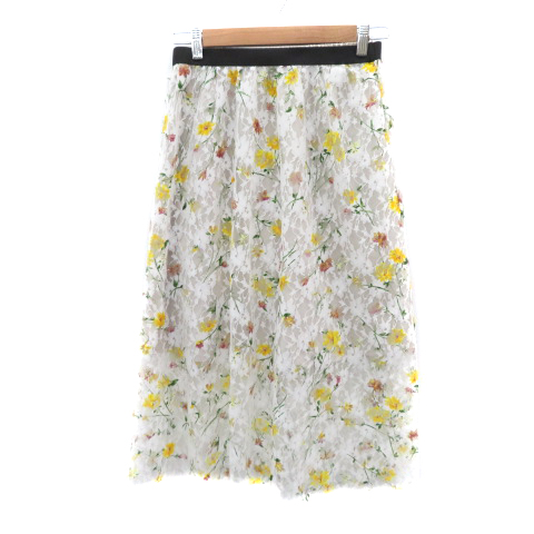 【中古】ビス フレアスカート ギャザースカート ロング丈 ペチコート付き レース F 白 ホワイト レディース