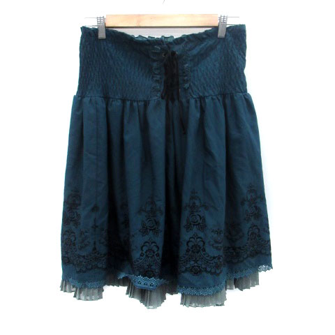 【中古】アクシーズファム axes femme フレアスカート ミモレ丈 プリーツ 刺繍 M モスグリーン